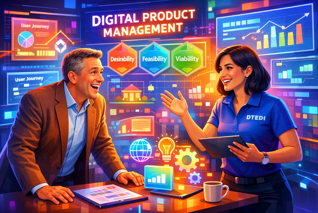 Digital product management refers to the process of designing, developing, improving, and governing digital systems that deliver value to users. In corporate environments, this role ensures that digital products such as mobile applications, platforms, or analytics tools solve real problems for customers while remaining technically feasible and financially sustainable.